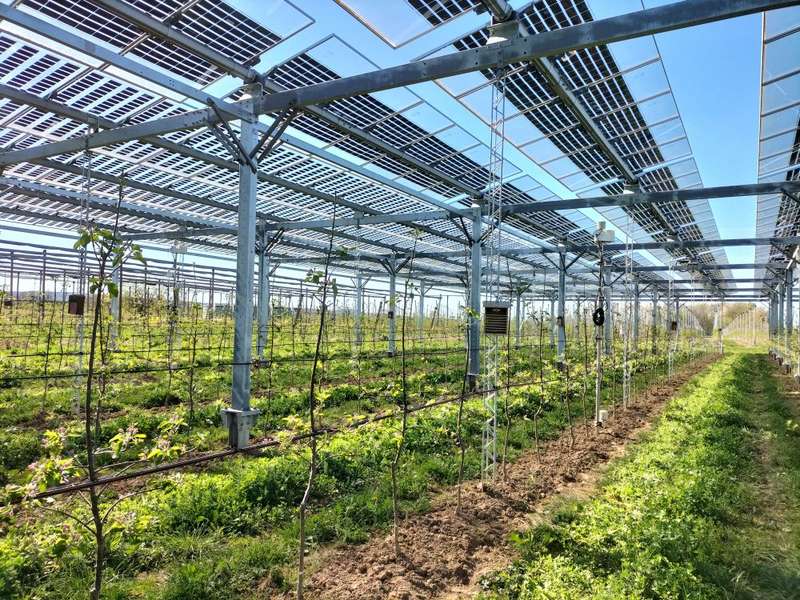 Die doppelte Flächennutzung durch Agri-PV bietet vielfältige Vorteile für die Landwirtschaft. Die Module können Kulturen vor Hagel, Frost und extremer Sonneneinstrahlung schützen, Bodenerosionen abwenden und durch entstehende Verschattung den Feuchtigkeitsverlust reduzieren. In der Folge kann auch der Bewässerungsbedarf sinken, wodurch Wasserressourcen effizienter genutzt werden. Weiterhin ist besonders bei geschlossenen Systemen der Einsatz von Pestiziden reduziert.