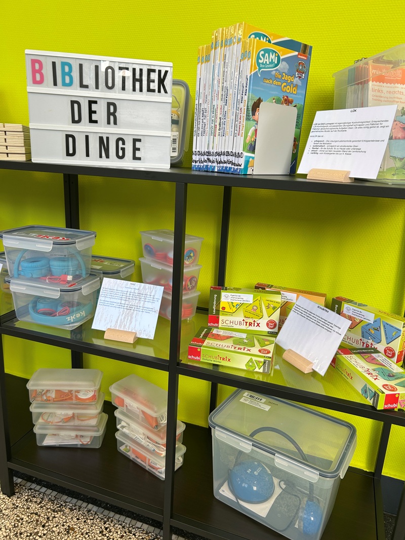Die Stadtbücherei Lahnstein schafft im Rahmen ihrer Bibliothek der Dinge und des Projekts Neue Multimediale Medien ein ergänzendes Ausleihangebot, das gezielt Kinder, Jugendliche und Familien anspricht. Diesen soll ermöglicht werden, neue Lern- und Spielmaterialien auszuprobieren, bevor eine Kaufentscheidung getroffen wird. So können Geräte und Medien zunächst auf ihren Nutzen und den Spaßfaktor innerhalb der Familie getestet werden. Das hilft, Fehlkäufe zu vermeiden und leistet einen Beitrag zur Nachhaltigkeit, der sich im Alltag unmittelbar auszahlt. Gleichzeitig ermöglicht die Ausleihe auch sozial benachteiligten Familien den Zugang zu vielseitigen modernen Bildungsmedien. Die Auswahl der angebotenen Gegenstände konzentriert sich auf solche, die spielerisch die Lese-, Sprach- und Medienkompetenz fördern. Wichtig ist außerdem, dass alle Dinge einfach zu bedienen sind, möglichst wenige Einzelteile enthalten und sich unkompliziert ausleihen sowie zurückgeben lassen. Zum Start der Bibliothek der Dinge umfasste das Angebot unter anderem interaktive Stifte, sprechende Figuren, kabellose Kinderkopfhörer mit Audiochips, digitale Lernboxen, kreative Buchtheater, multimediale Globen sowie verschiedene Geräte zur spielerischen Sprachförderung.